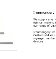 Ironmongery we can supply includes: customised kick plates, push plates, door signage, numbers, handles and bespoke designs.
